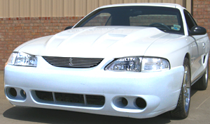 Material: Handlaid Fiberglass Description: Custom ABC designed GTR 8011 Front Bumper Cover for 1994-1998 Mustangs. This is a complete bumper made of Urethane. Installation is very simple, just remove the old bumper and re use the factory hardwares again. It will fit all 1994-1998 models. Customers comment: "A Great Looking Bumper!!" This bumper matches the factory sides, no need for a complete bodykit!! |
